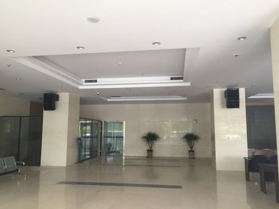 3、現場層高問題:現場廳內高度為4.5m,加上聲學環境,我們采用目前音響行業內最為先進的有源線性陣列音響。優異的指向性、大范圍的聲場覆蓋、高標準的安裝方式完全滿足了業主近似苛刻的音視頻要求。目前此次項目已經投入使用,并圓滿召開了多次會議。優秀的方案設計、過硬的設備和嚴謹的施工布線組成這套完整的音視頻工程贏得了業主的滿意。