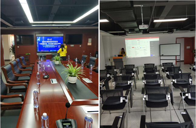 視頻方面,主要為教學及會議室使用,配置了國際一線品牌愛普生的高清投影機,考慮到大教室中后排人員可能看不清投影機畫面,我們配置了2臺65寸液晶顯示屏固定吊裝,通過視頻分配器將畫面同步到顯示器。